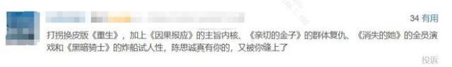 不心爱的不雅众,会从配乐、剧情、逻辑致使是滤镜那边挑陈念念诚的错误,一会说他造作共情,一会说他低价杂耍,归正看不容或你拍的东西都不行;更有东谈主认为陈念念诚鉴戒了《飓风补救》、鉴戒了《消散的她》、致使还有东谈主说他从《亲切的金子》那边拿了一些灵感,更有东谈主说连他炸船都是在效法诺兰。