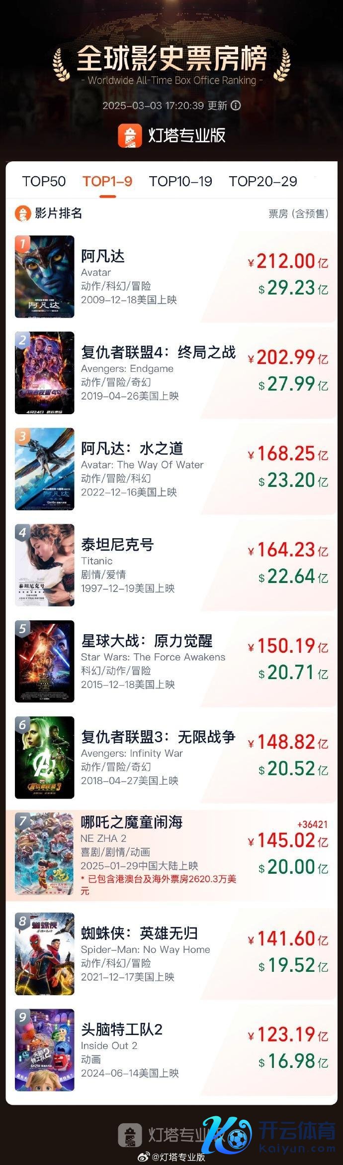 据灯塔专科版及时数据,甘休3月3日17时20分开云体育,影片《》票房打破145亿。