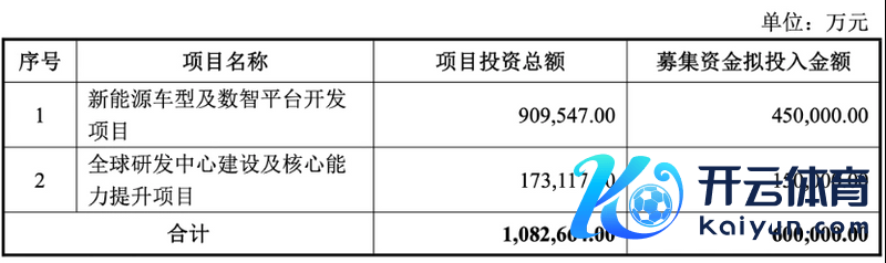 公告先容,在扣除干系刊行用度后的召募资金净额将用于新动力车型及数智平台拓荒、大师研发中心设立及中枢才能普及两大表情。