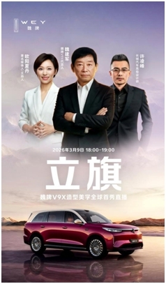 3月9日,长城汽车旗下魏牌在保定举办“立旗”主题直播,其“AI豪华六座旗舰”魏牌V9X造型好意思学开启全球首秀。长城汽车董事长魏建军更是初度以车型代言东谈主身份亮相,与驰名主握东谈主欧阳夏丹、长城汽车高等打算师许凌峰一同深度解读魏牌V9X的东方好意思学打算内核,并针对行业热议的“豪车出生论”、中国品牌自主研发与高端化发展等议题伸开报告,鼓吹中国豪华汽车品牌从制造自信迈向文化自信。