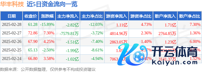 本站音问,适度2025年2月28日收盘,华丰科技(688629)报收于61.28元,下落15.89%开云体育(中国)官方网站,换手率20.03%,成交量35.72万手,成交额23.45亿元。